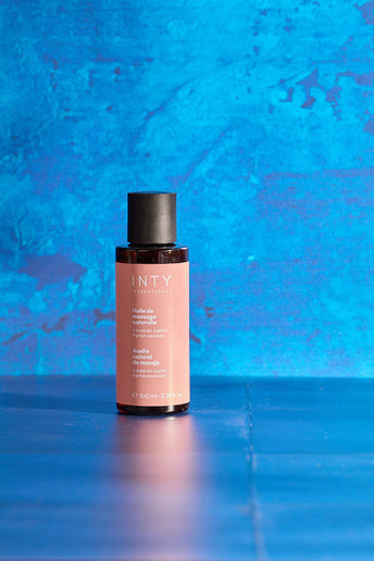Huile corps au jojoba hydratant subtilement parfumée à l’ambre pour des massages sensuels.